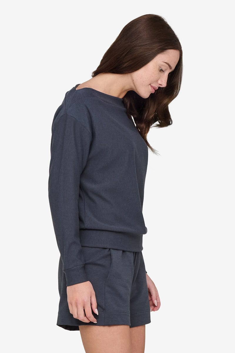 Meet your new go-to layer: the Boatneck Sweatshirt. Made from our ultra-soft bamboo cotton french terry, this elevated basic is equal parts flattering and comfortable. Designed with a wide, straight neckline that accentuates the collar bones, it brings a touch of elegance to a laid-back look
