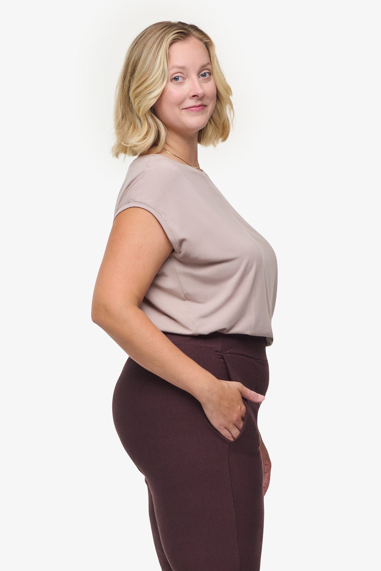 Our Box Tee will be your new favourite top. Made with super soft modal fabric the Box Tee has a drapey and loose fit. Hitting at hip length, this tee offers full coverage where desired and comfort throughout. Another reason to love this top - the Box Tee is manufactured in Canada with sustainably sourced fabric.