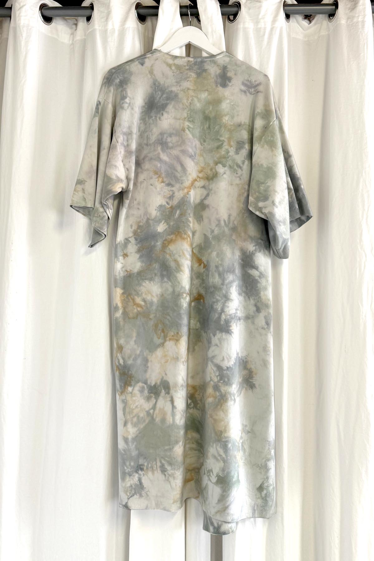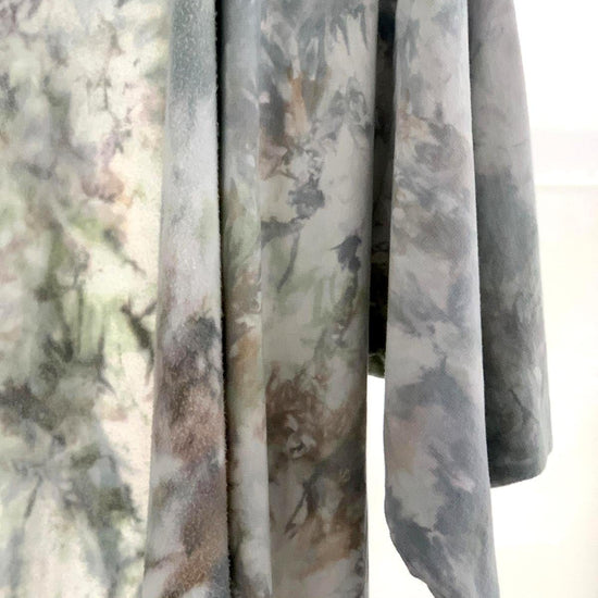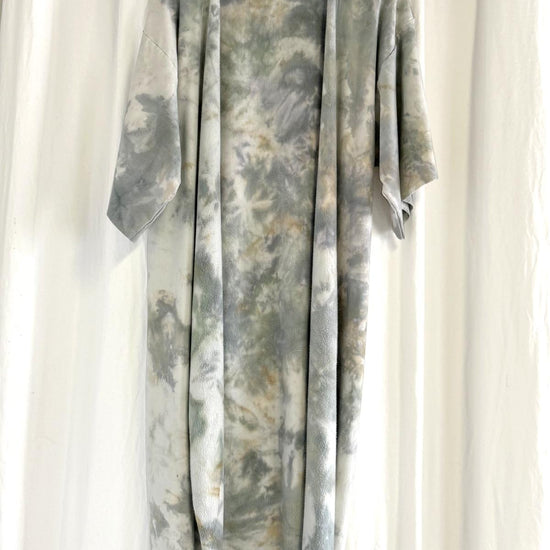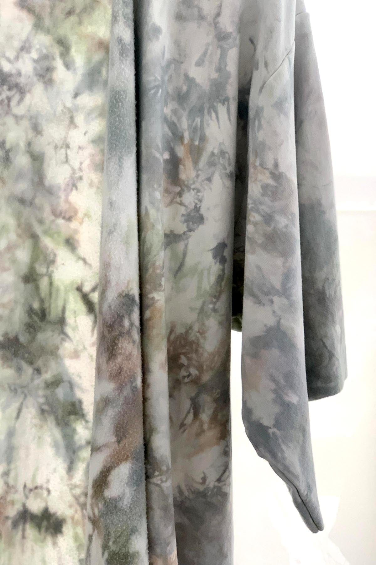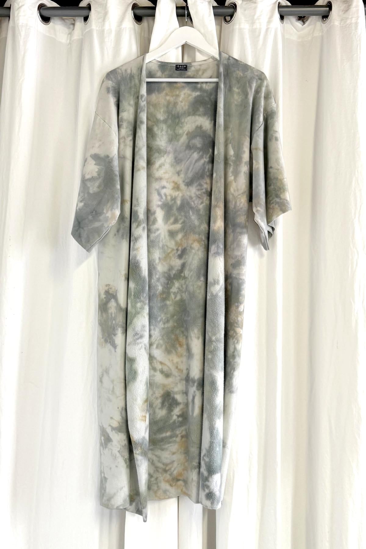 This hand-dyed piece is a client favourite because of it's softness and cozy feel. Crafted in our signature bamboo cotton fleece, these robes are gorgeous with their one of a kind patterns. With a gentle drape and raw edge, the Kimono Sleeve Robe is the perfect addition to your everyday outfit, adding a touch of colour and complimenting your features. As with everything in our line, these pieces are made in limited edition.