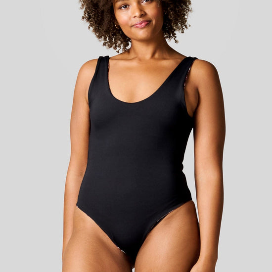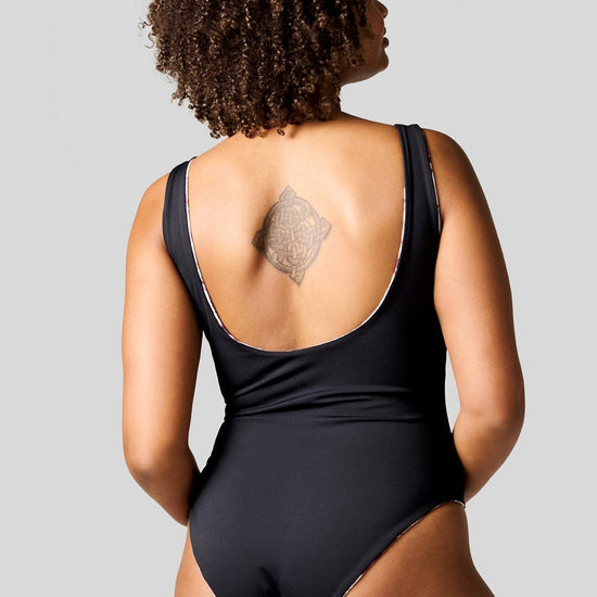 The Kenzie One Piece is designed to be worn printed or black side out depending on your mood. Thick straps, low back and medium bum coverage. The lining is the same weight as the main fabric giving your body a lovely sense of comfort and great coverage through the body.