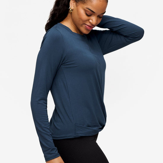 The Leilani Longsleeve features a flattering draped front that adds a subtle twist to the classic longsleeve design. The relaxed fit and graceful silhouette make it an easy-to-wear staple that pairs beautifully with everything from your favourite leggings to tailored pants.