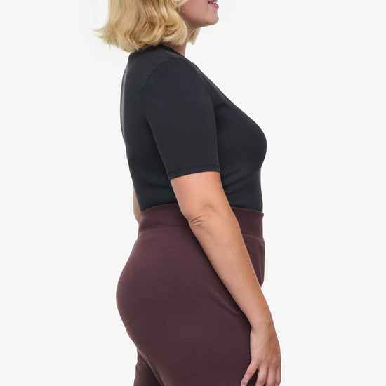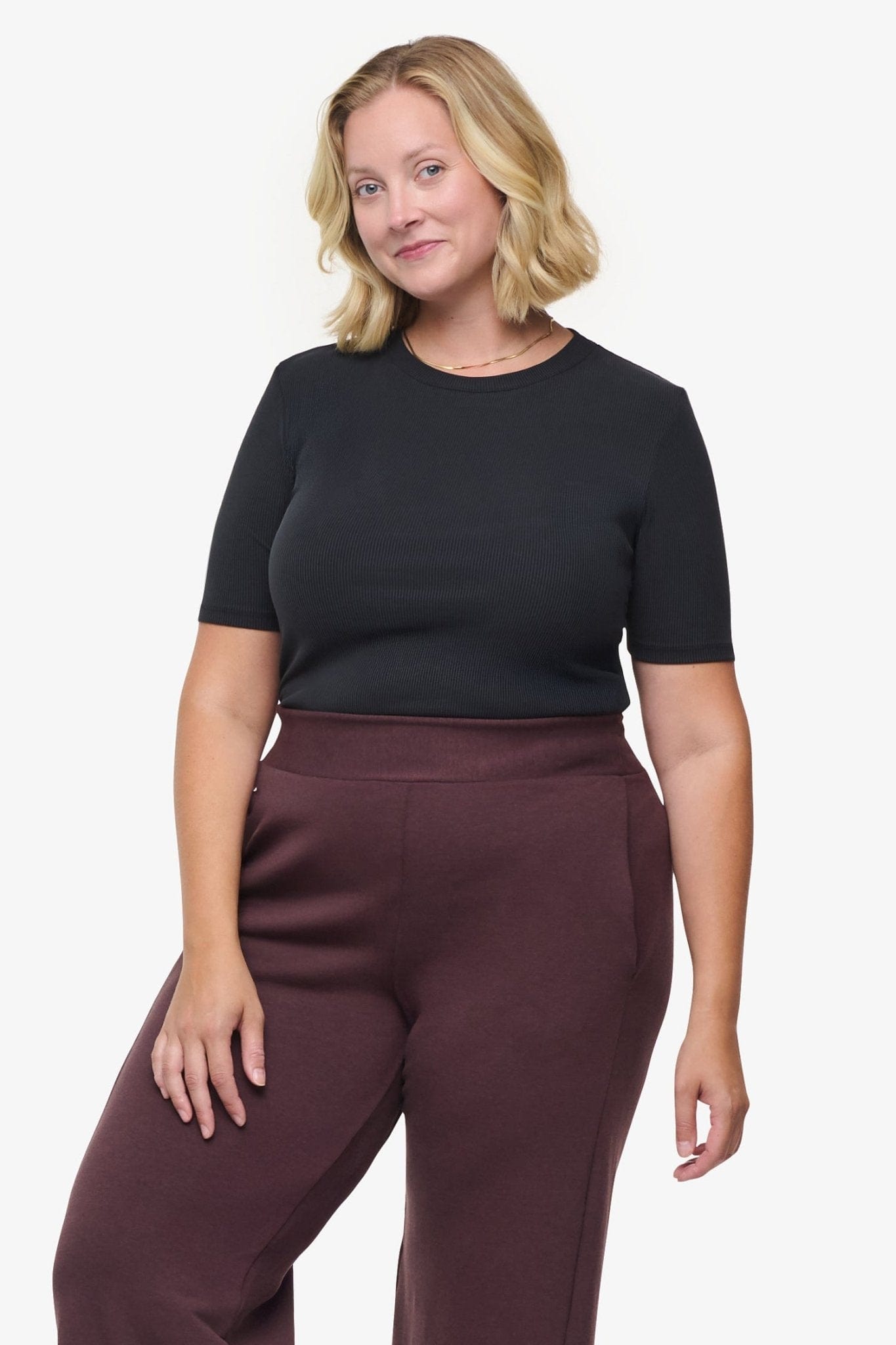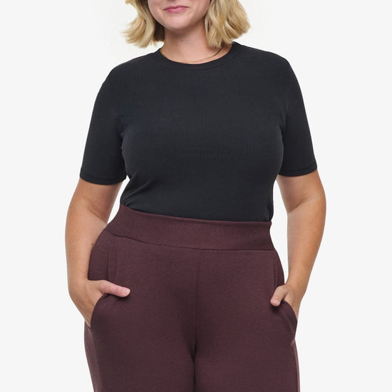 This fitted tee features ultra-soft modal ribbed fabric that contours the body perfectly. Its slightly elevated neckline and flattering silhouette create a polished look with ease.