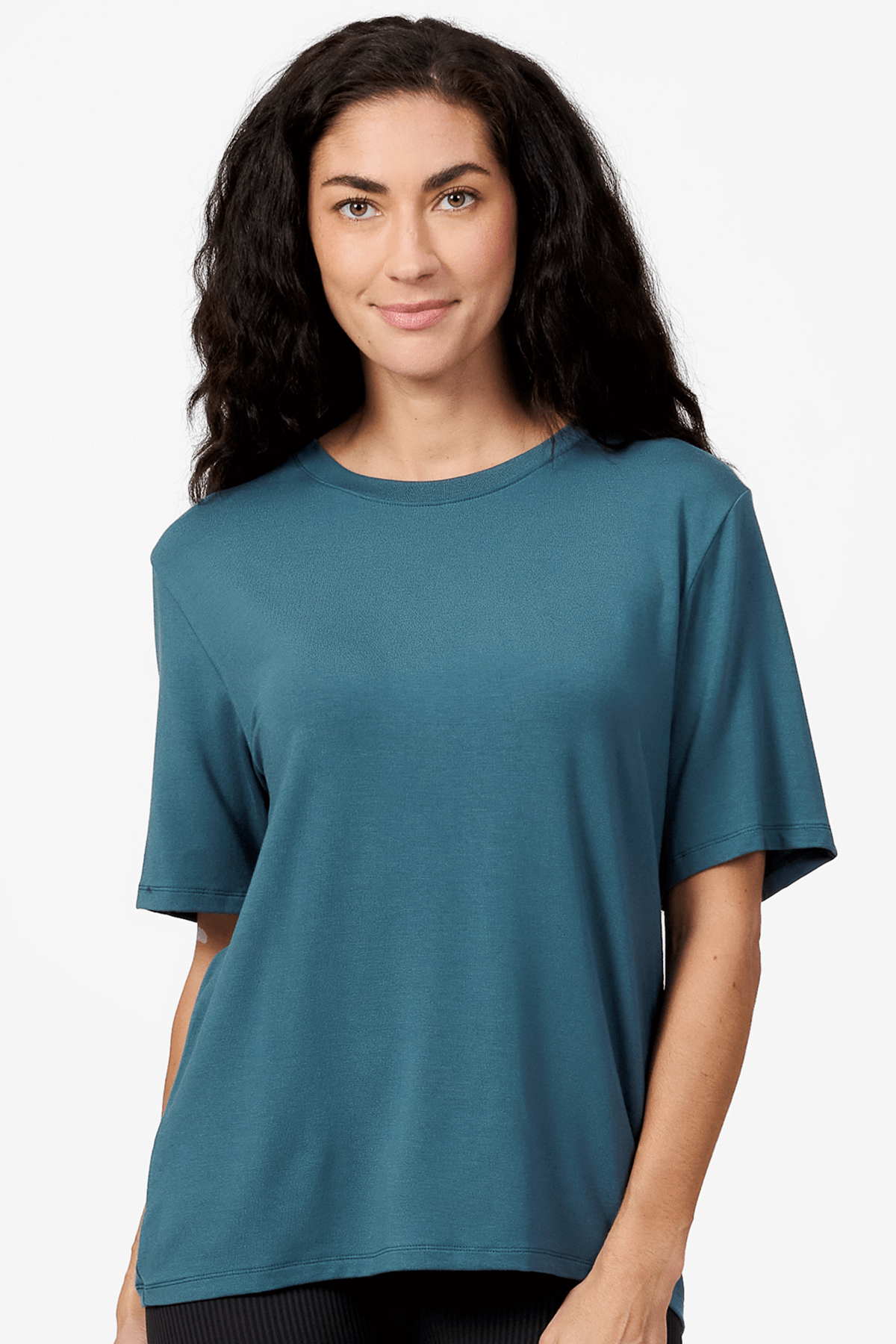 The Weekend Tee is designed to be exactly that: your favourite piece to wear in your off time. Don't let that description fool you though. The Weekend Tee is the perfect tee for every day. Cut from our signature modal fabric, this tee drapes beautifully over the body to hang and give your body shape. The sleeve is longer and looser for coverage and to give a bit of a dressier look.
